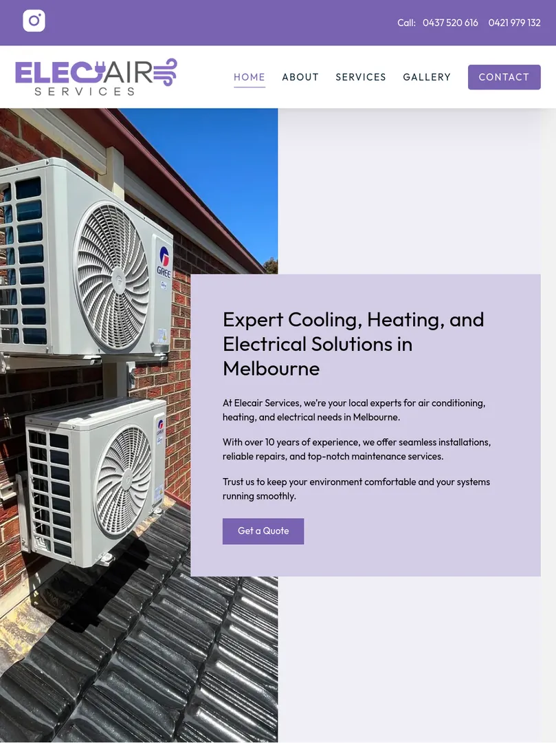 At Elecair Services, we’re your local experts for air conditioning, heating, and electrical needs in Melbourne.